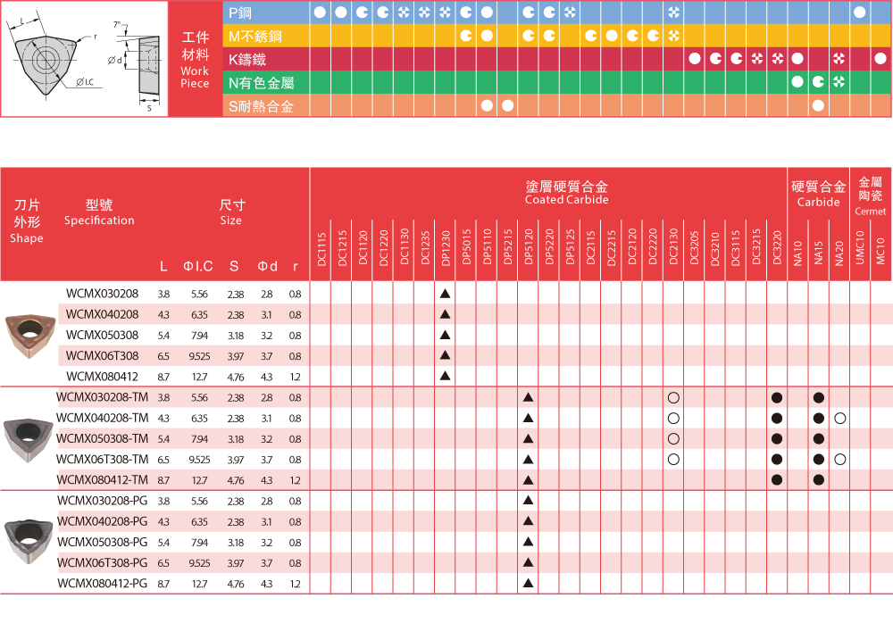| Insert Grades - Drilling 鏜孔刀片牌號(hào)一覽表 |