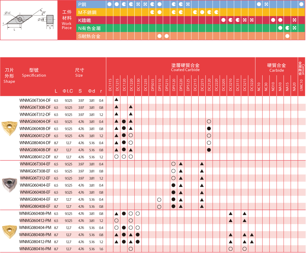 | Insert Grades - Turning 車(chē)削刀片牌號(hào)一覽表 |