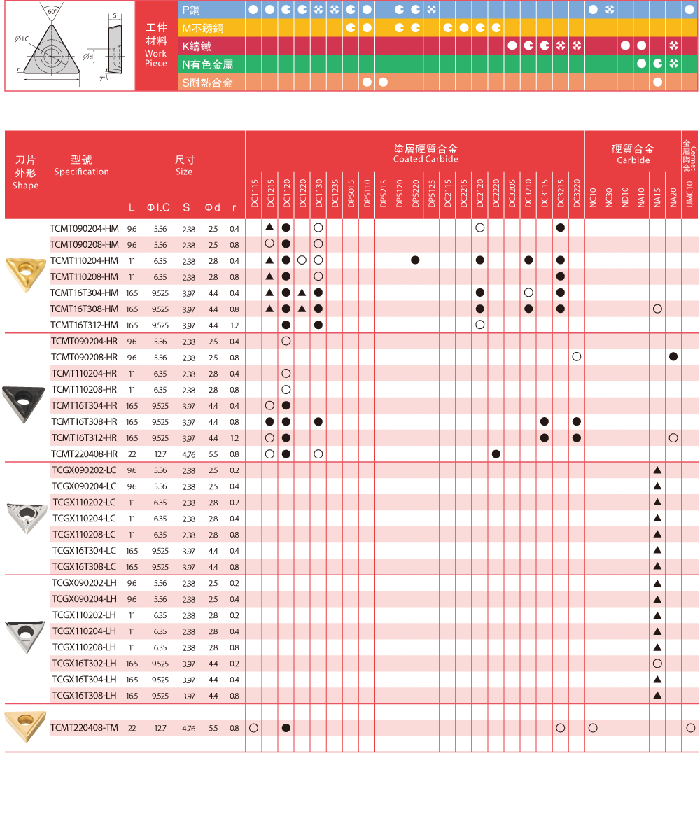 | Insert Grades - Turning 車削刀片牌號一覽表 |