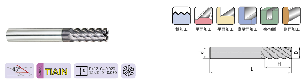 · DP高性能通用加工立銑刀 · DG通用加工立銑刀 · DH高硬度加工立銑刀 · DL鋁加工立銑刀 |