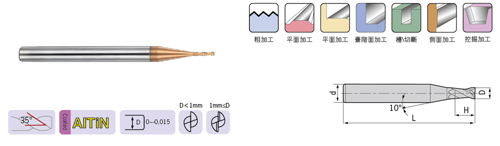 DH-2-ES兩刃直柄微小徑平頭立銑刀