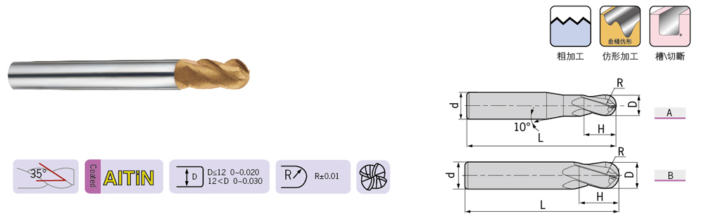 | DH-4-B / Ball / Standard / 4 Flutes DH-4-B四刃直柄球頭立銑刀 |