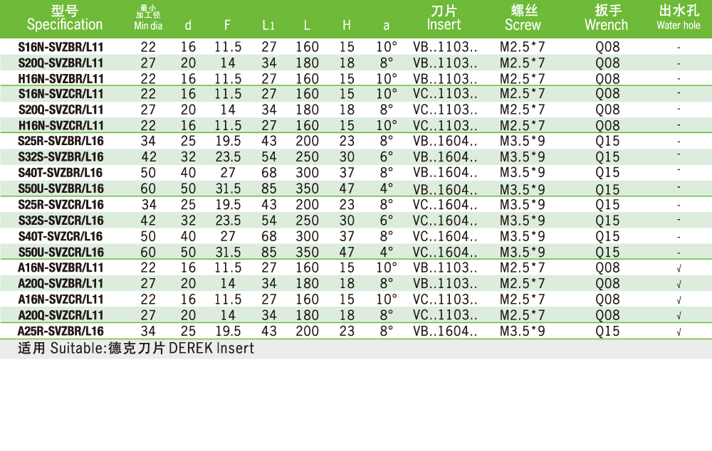 · 鏜刀片 · 銑刀片 · 普通車刀片 · 切槽車刀片 · 螺紋車刀片 |
