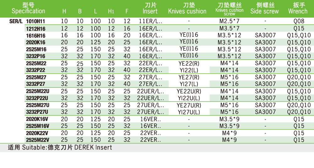 · 鏜刀片 · 銑刀片 · 普通車刀片 · 切槽車刀片 · 螺紋車刀片 |