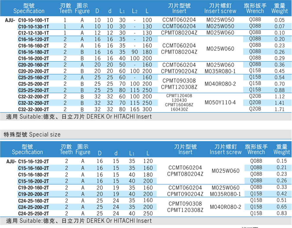 | AJU Screw-on Cutter For Drilling Milling AJU鎖牙式過中心鉆銑刀頭 |