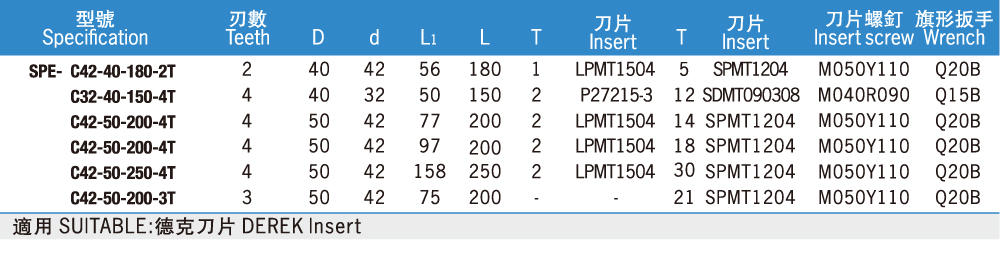 | SPE Shell Mill For Roughing SPE粗切削端銑刀 |