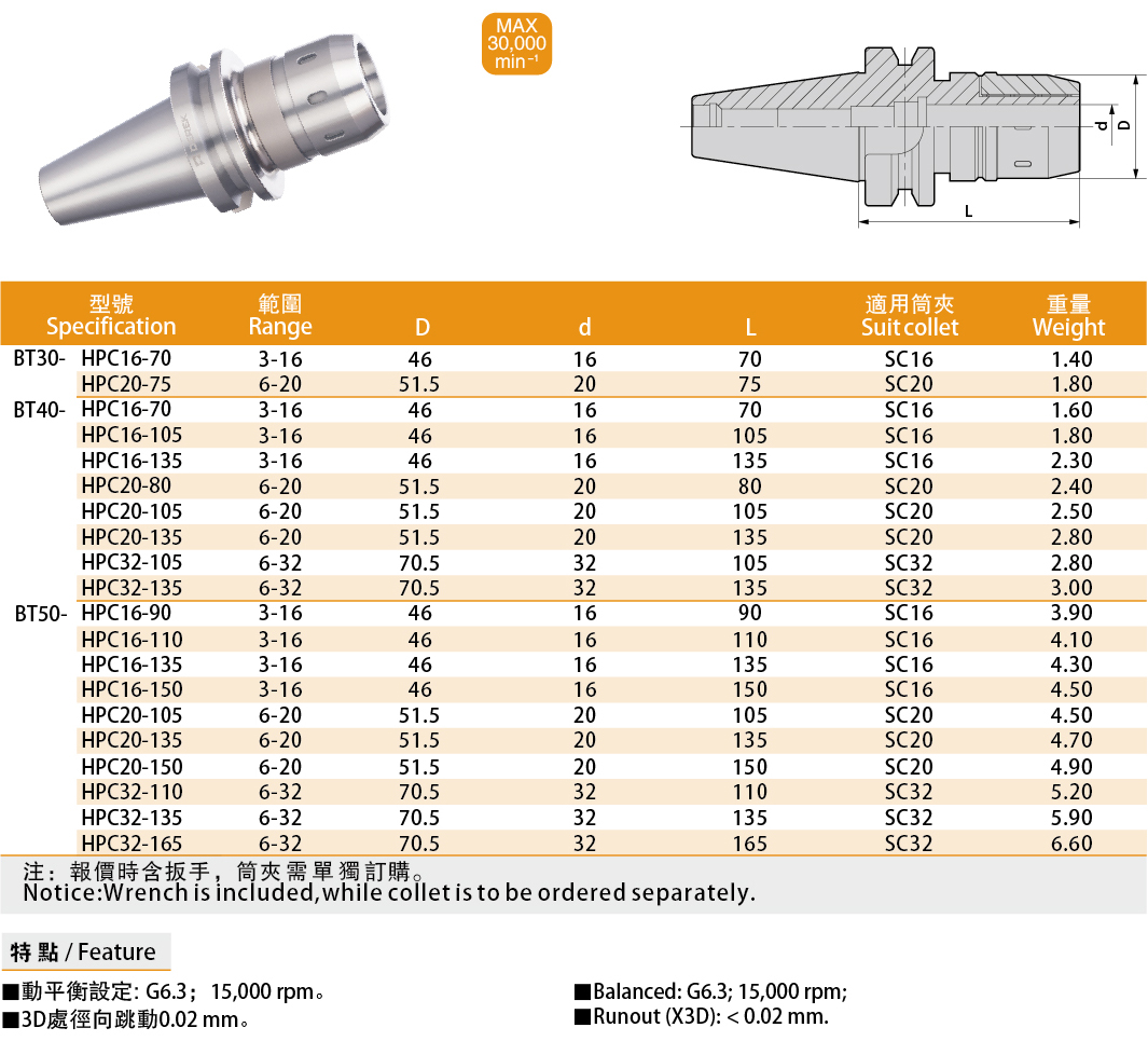 | BT-HPC High-speed Milling Chuck BT-HPC高速精密強力銑刀夾頭 |