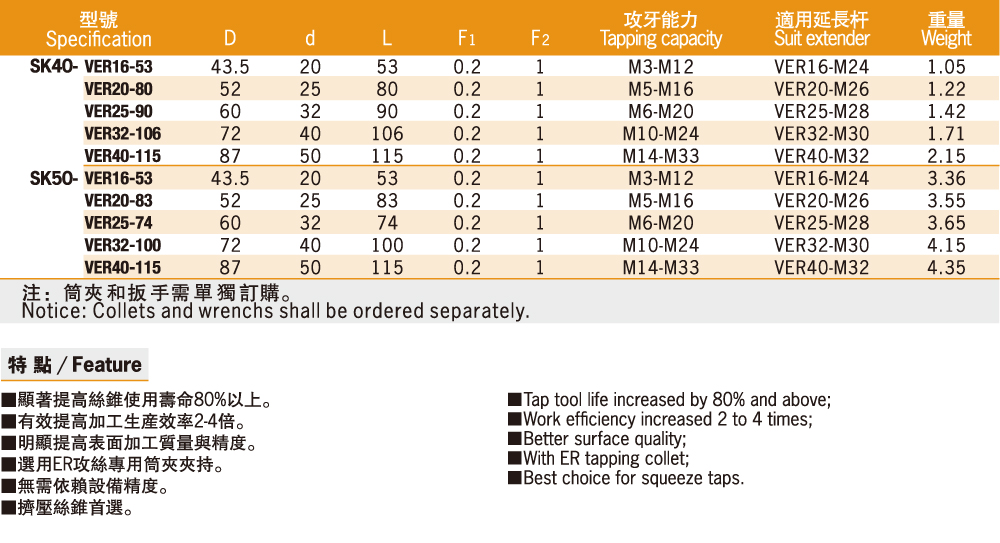 | SK-VER Tapping Chuck SK-VER快換式微補(bǔ)償攻牙刀柄 |