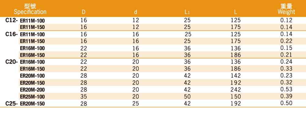 | ER Collet Extender (M-Type) M型直柄ER彈性筒夾延長桿 |